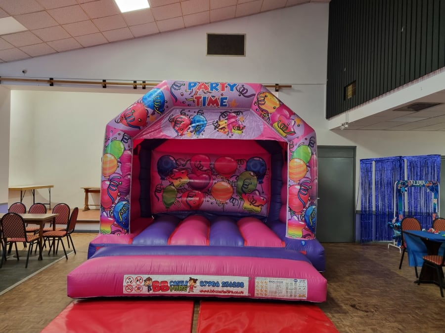 - This Pink party time Bouncy castle is ideal for most sized gardens, but if you are in doubt please contact us.