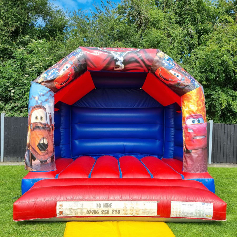 When booking our Cars bouncy castle hire Hinckley please double check that you have the space required, Our Cars castle can only be set up on real grass outdoors, And with a minimal sloped area, and is well away from any fixed objects. (Rain cover is fitted this Bouncy castle )
