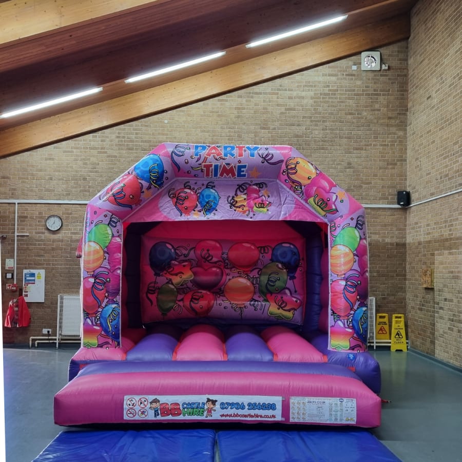 - This Pink party time Bouncy castle is ideal for most sized gardens, but if you are in doubt please contact us.